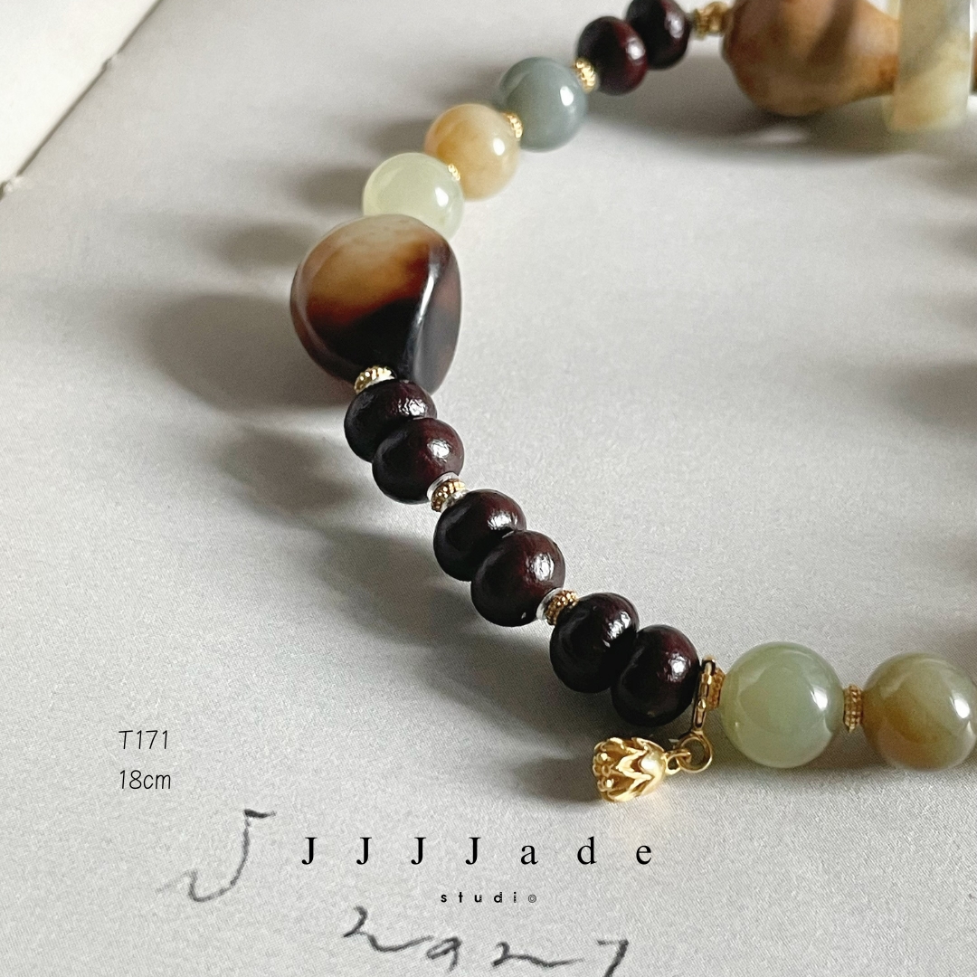 串上同是青花帶糖跑環讓整體更靈動有趣樓蘭三色珠8mm產地 | 新疆