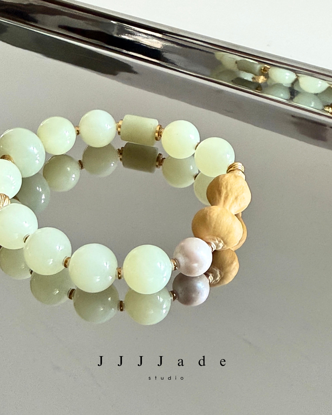 最後,點綴上一顆近天然珍珠,讓異材質的碰撞激盪出豐富的視覺深度。