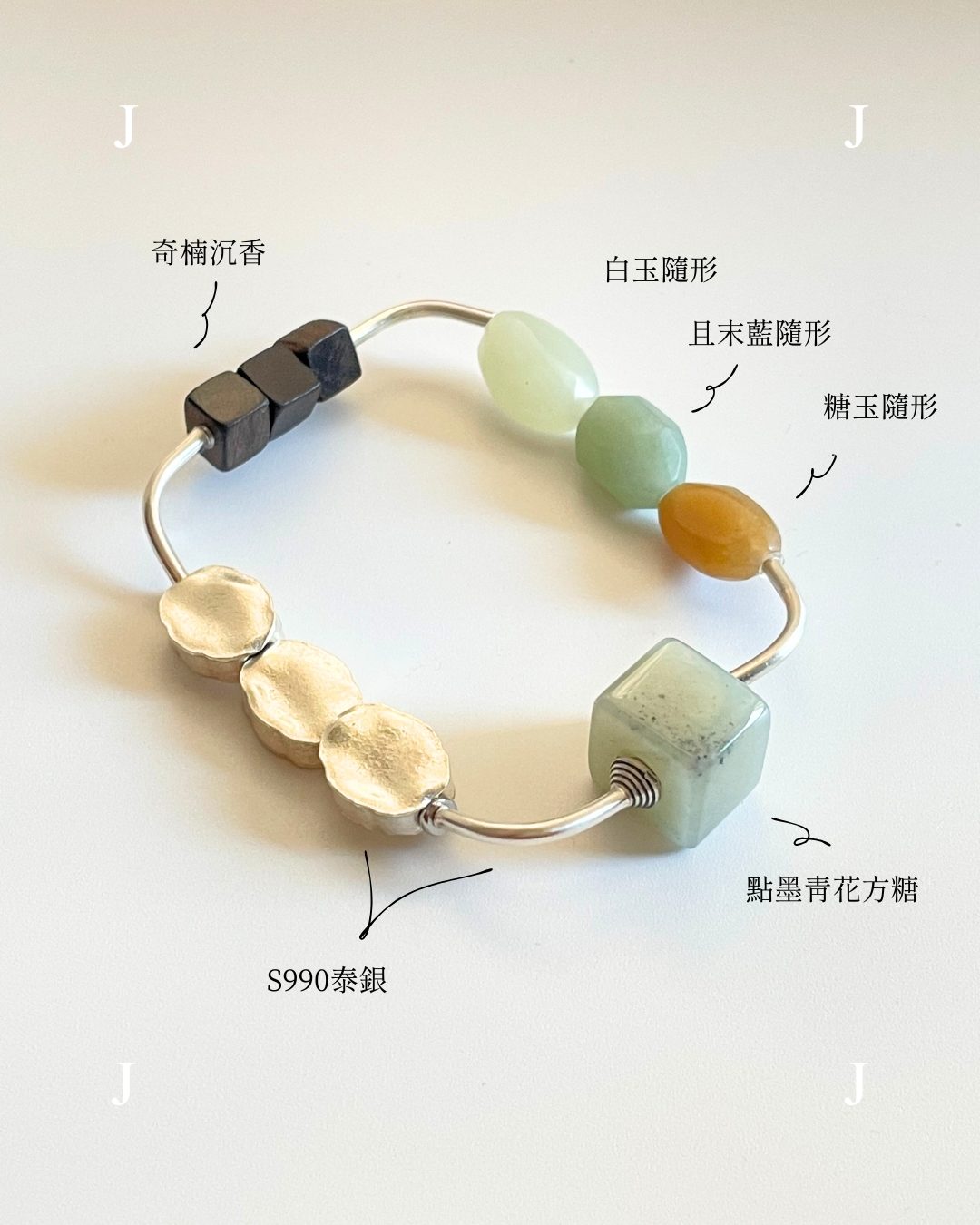 四個段落之間,都用泰國手工彎管銀串接。熟悉的結構,